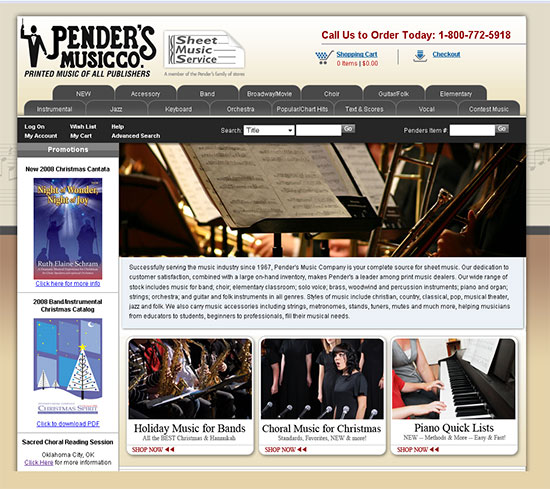 Penders ecommerce web site features a selection of over 300,000 products! A clean, black-tie look with a friendly search function allows visitors to select and purchase sheet music from Pender’s vast library.