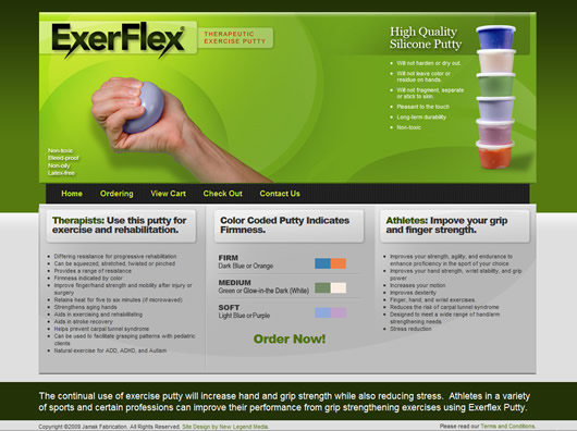 The clean, modern design of the ExerFlex web site highlights the use and advantages of buying this product, while remaining simple and easy to navigate.
